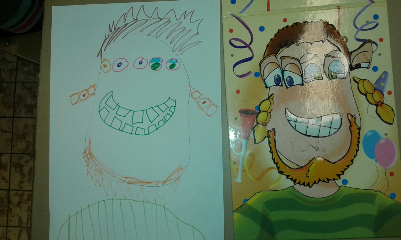 Als we de werkjes bekijken merken de kleuters op dat heel wat zelfportretten van alles missen. De meeste kleuters tekenden geen oren, en ook wenkbrauwen en hals werden vaak vergeten.